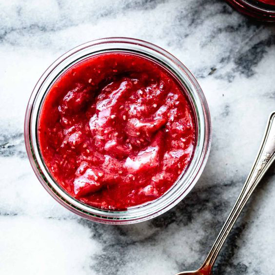 | 냉동딸기 2컵 (약 20알), 치아씨드 2T, 메이플시럽 1T, 레몬즙 반개 |